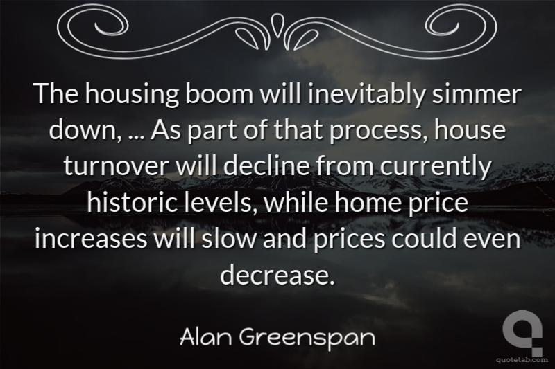 The housing boom will inevitably simmer down, ... As part of that process, house turnover will decline from currently historic levels, while home price increases will slow and prices could even decrease.