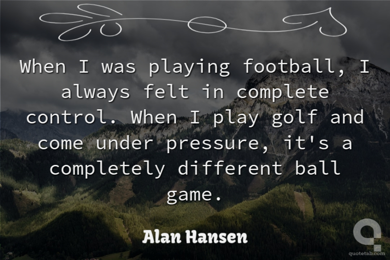 When I was playing football, I always felt in complete control. When I play golf and come under pressure, it's a completely different ball game.