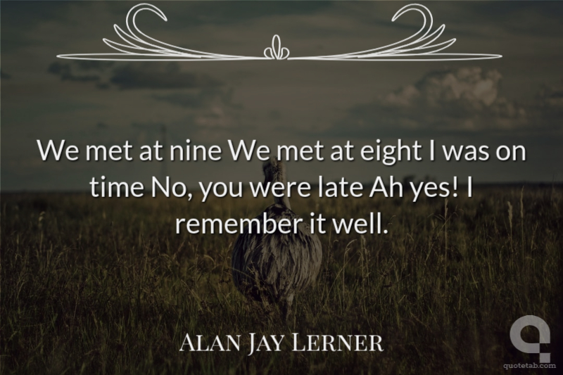 We met at nine We met at eight I was on time No, you were late Ah yes! I remember it well.