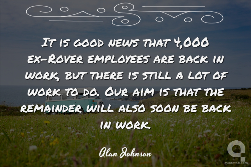 It is good news that 4,000 ex-Rover employees are back in work, but there is still a lot of work to do. Our aim is that the remainder will also soon be back in work.