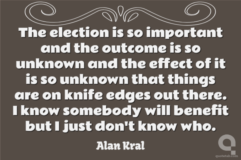 The election is so important and the outcome is so unknown and the effect of it is so unknown that things are on knife edges out there. I know somebody will benefit but I just don't know who.