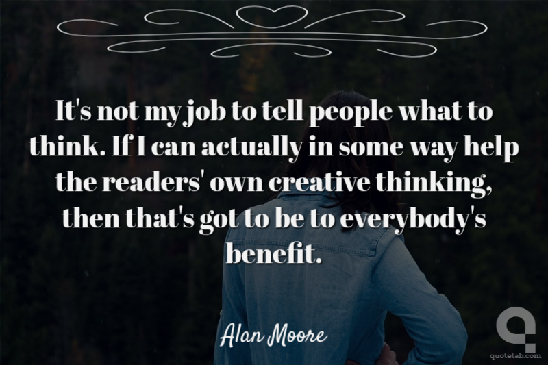 It's not my job to tell people what to think. If I can actually in some way help the readers' own creative thinking, then that's got to be to everybody's benefit.