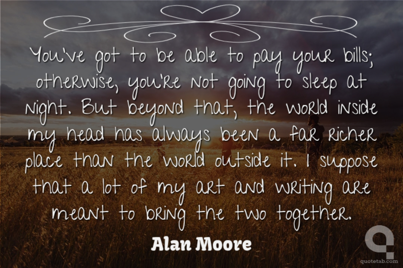 You've got to be able to pay your bills; otherwise, you're not going to sleep at night. But beyond that, the world inside my head has always been a far richer place than the world outside it. I suppose that a lot of my art and writing are meant to bring the two together.