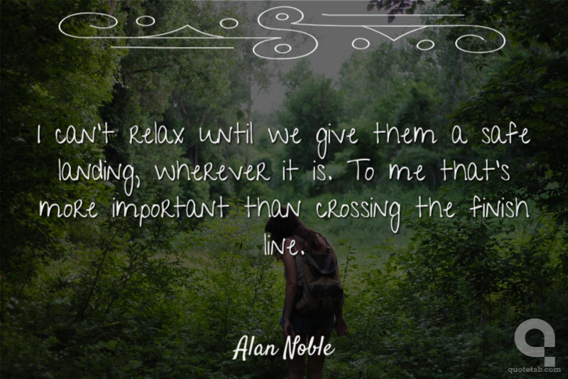 I can't relax until we give them a safe landing, wherever it is. To me that's more important than crossing the finish line.