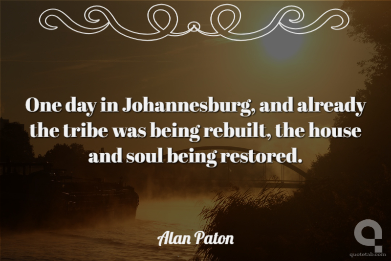 One day in Johannesburg, and already the tribe was being rebuilt, the house and soul being restored.