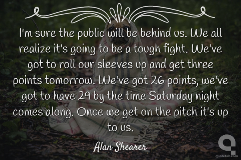 I'm sure the public will be behind us. We all realize it's going to be a tough fight. We've got to roll our sleeves up and get three points tomorrow. We've got 26 points, we've got to have 29 by the time Saturday night comes along. Once we get on the pitch it's up to us.