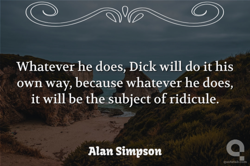 Whatever he does, Dick will do it his own way, because whatever he does, it will be the subject of ridicule.