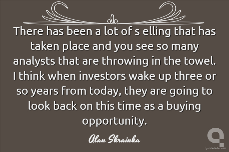 There has been a lot of s elling that has taken place and you see so many analysts that are throwing in the towel. I think when investors wake up three or so years from today, they are going to look back on this time as a buying opportunity.