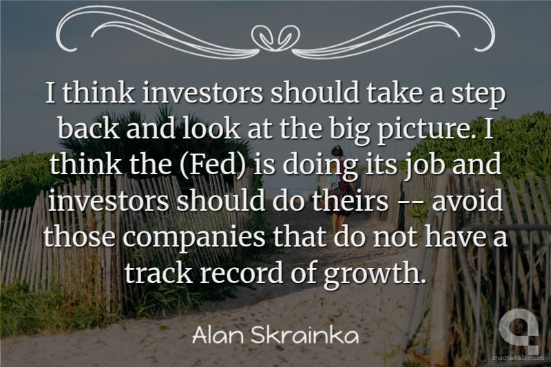 I think investors should take a step back and look at the big picture. I think the (Fed) is doing its job and investors should do theirs -- avoid those companies that do not have a track record of growth.