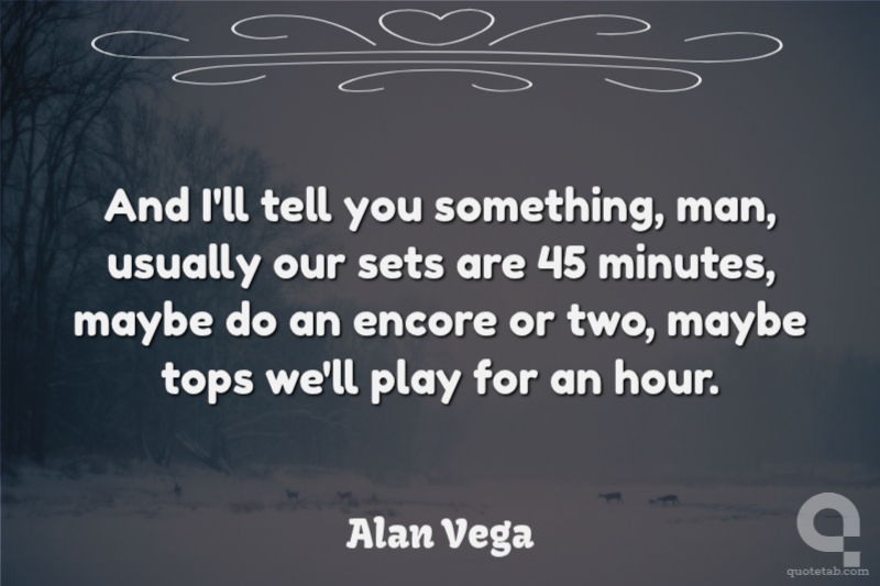 And I'll tell you something, man, usually our sets are 45 minutes, maybe do an encore or two, maybe tops we'll play for an hour.