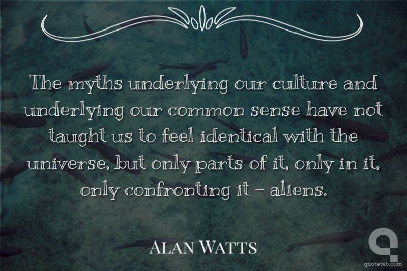 The myths underlying our culture and underlying our common sense have not taught us to feel identical with the universe, but only parts of it, only in it, only confronting it - aliens.