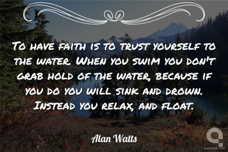 To have faith is to trust yourself to the water. When you swim you don't grab hold of the water, because if you do you will sink and drown. Instead you relax, and float.