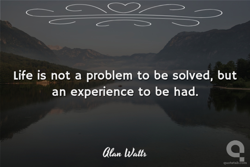 Life is not a problem to be solved, but an experience to be had.