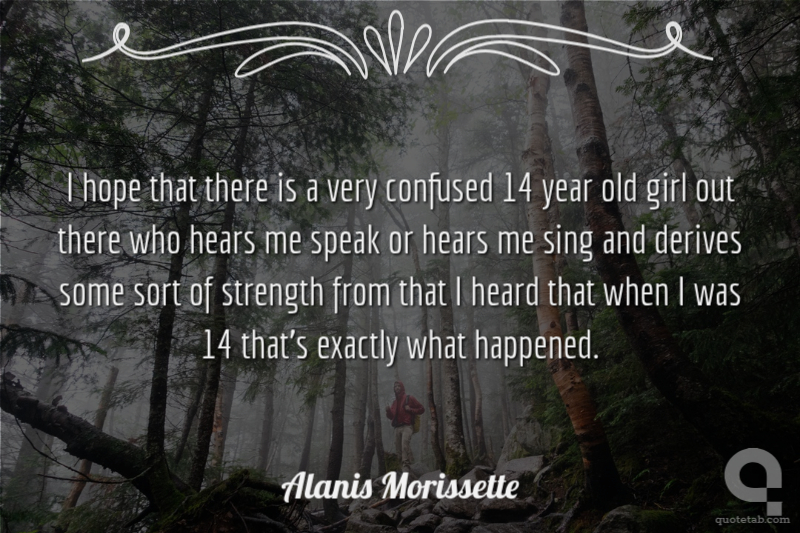 I hope that there is a very confused 14 year old girl out there who hears me speak or hears me sing and derives some sort of strength from that I heard that when I was 14 that's exactly what happened.