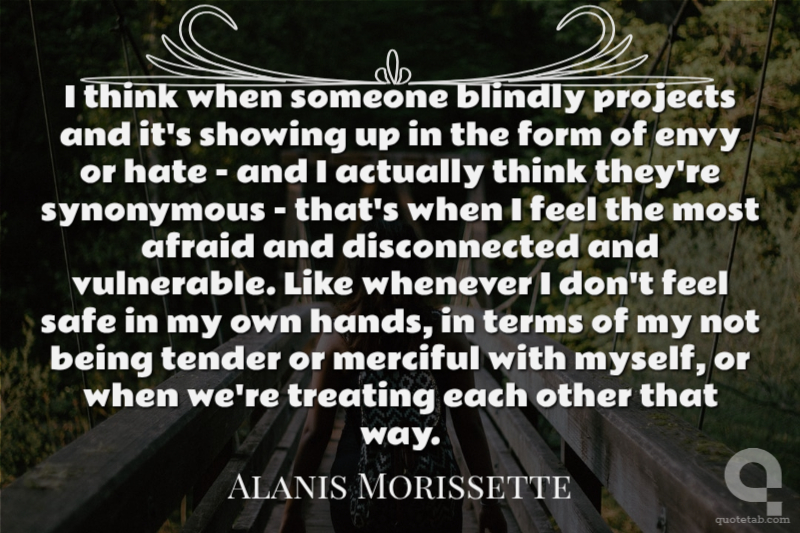 I think when someone blindly projects and it's showing up in the form of envy or hate - and I actually think they're synonymous - that's when I feel the most afraid and disconnected and vulnerable. Like whenever I don't feel safe in my own hands, in terms of my not being tender or merciful with myself, or when we're treating each other that way.