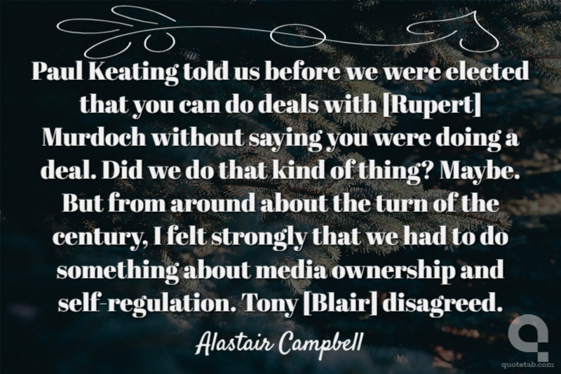 Paul Keating told us before we were elected that you can do deals with [Rupert] Murdoch without saying you were doing a deal. Did we do that kind of thing? Maybe. But from around about the turn of the century, I felt strongly that we had to do something about media ownership and self-regulation. Tony [Blair] disagreed.
