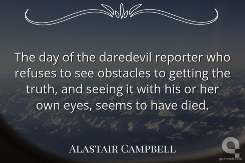 The day of the daredevil reporter who refuses to see obstacles to getting the truth, and seeing it with his or her own eyes, seems to have died.
