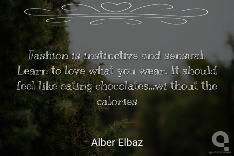 Fashion is instinctive and sensual. Learn to love what you wear. It should feel like eating chocolates...wi thout the calories
