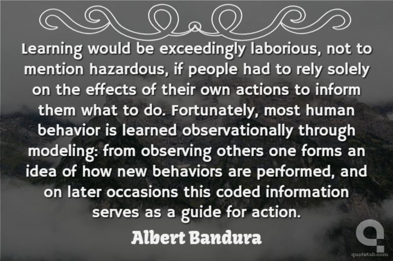 Learning would be exceedingly laborious, not to mention hazardous, if people had to rely solely on the effects of their own actions to inform them what to do. Fortunately, most human behavior is learned observationally through modeling: from observing others one forms an idea of how new behaviors are performed, and on later occasions this coded information serves as a guide for action.