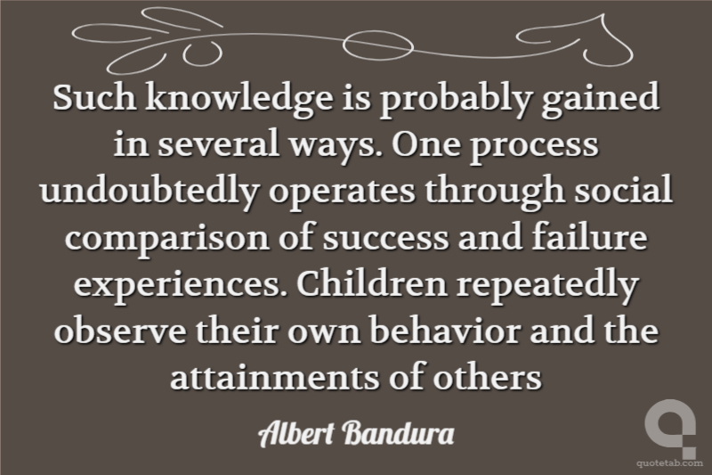 Such knowledge is probably gained in several ways. One process undoubtedly operates through social comparison of success and failure experiences. Children repeatedly observe their own behavior and the attainments of others