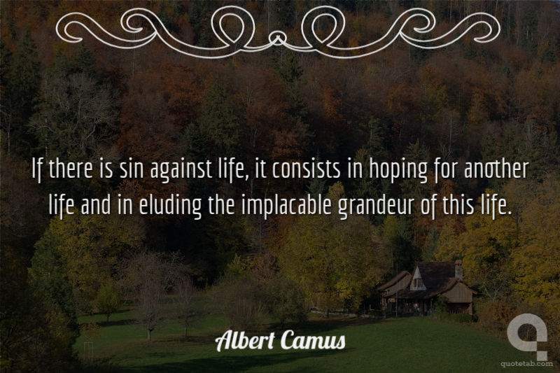 If there is sin against life, it consists... in hoping for another life and in eluding the implacable grandeur of this life.