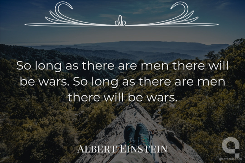 So long as there are men there will be wars. So long as there are men there will be wars.