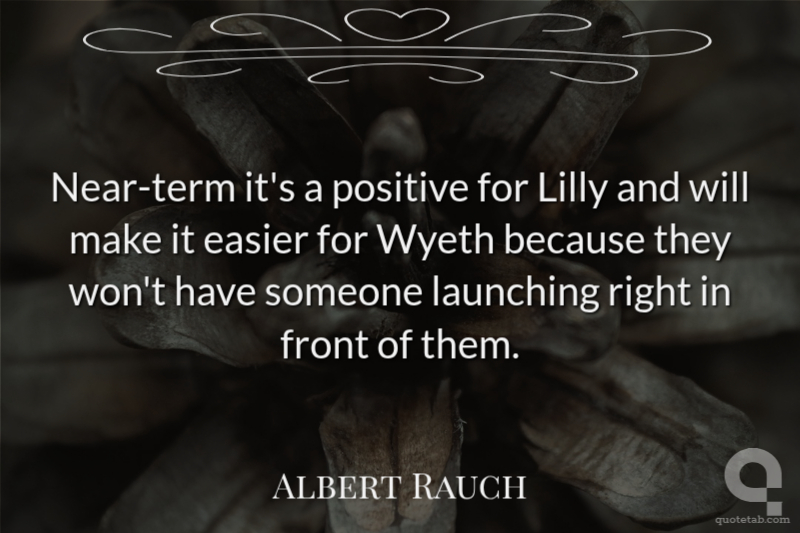 Near-term it's a positive for Lilly and will make it easier for Wyeth because they won't have someone launching right in front of them.