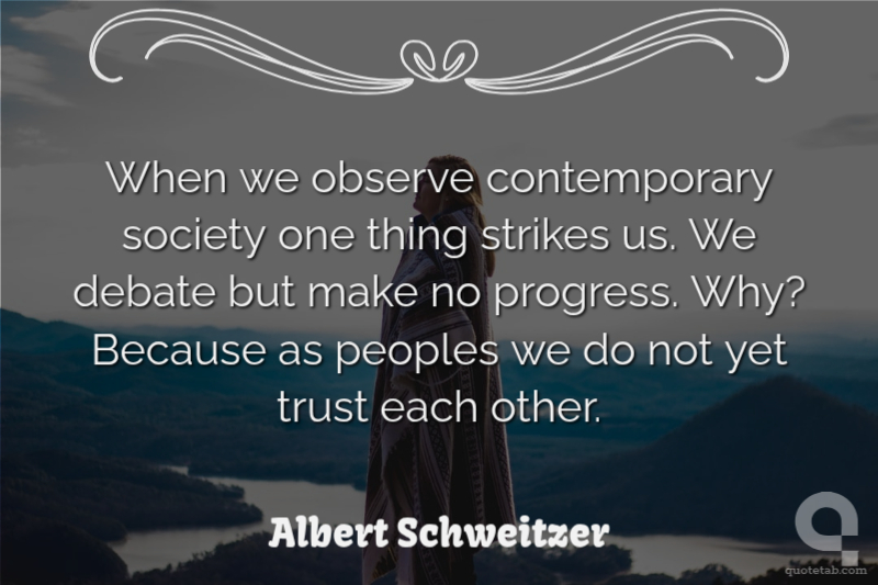 When we observe contemporary society one thing strikes us. We debate but make no progress. Why? Because as peoples we do not yet trust each other.