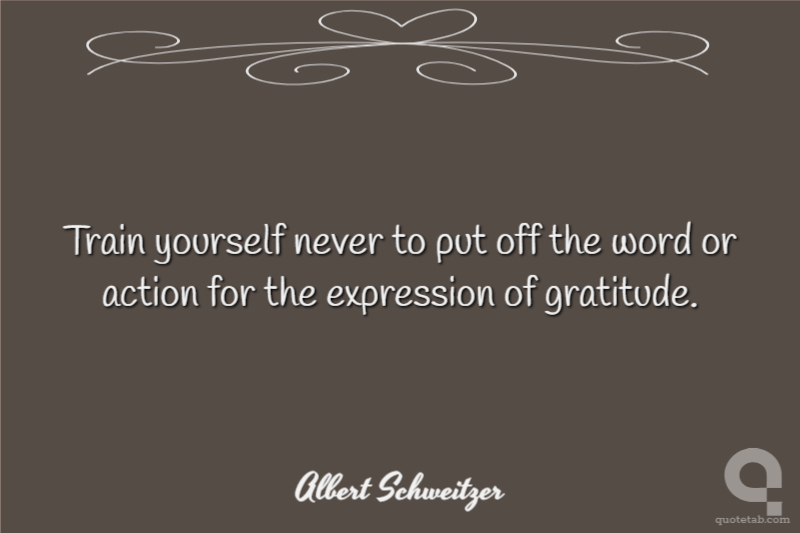 Train yourself never to put off the word or action for the expression of gratitude.