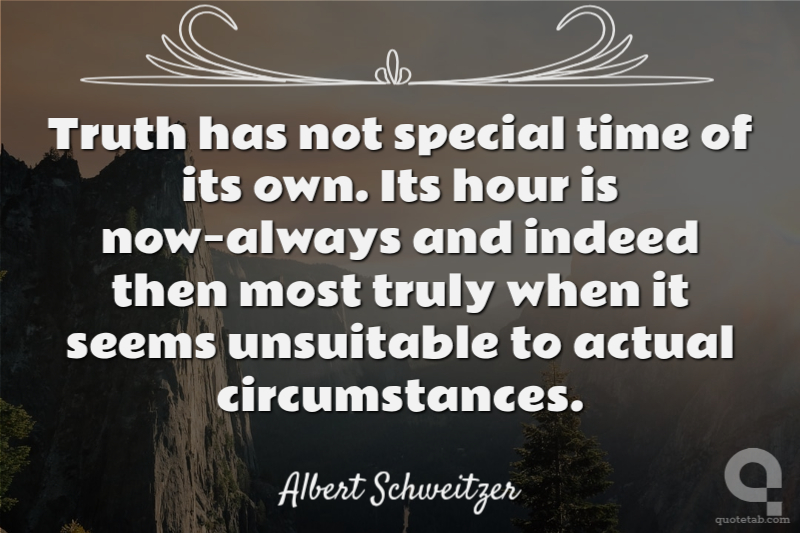 Truth has not special time of its own. Its hour is now - always and, indeed then most truly, when it seems unsuitable to actual circumstances.