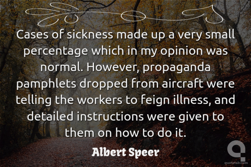 Cases of sickness made up a very small percentage which in my opinion was normal. However, propaganda pamphlets dropped from aircraft were telling the workers to feign illness, and detailed instructions were given to them on how to do it.