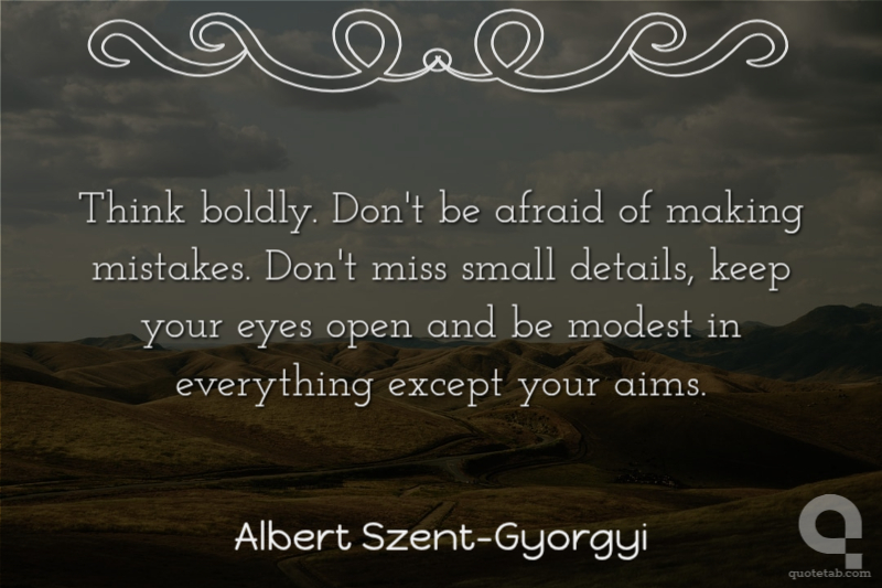 Think boldly. Don't be afraid of making mistakes. Don't miss small details, keep your eyes open and be modest in everything except your aims.