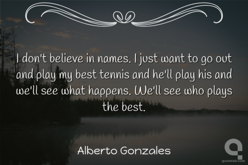 I don't believe in names. I just want to go out and play my best tennis and he'll play his and we'll see what happens. We'll see who plays the best.