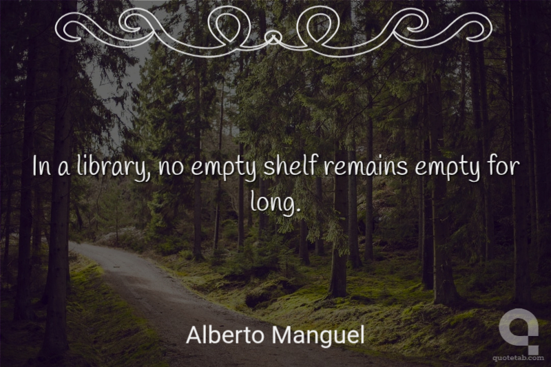 It has always been my experience that, whatever groupings I choose for my books, the space in which I plan to lodge them necessarily reshapes my choice and, more important, in no time proves too small for them and forces me to change my arrangement. In a library, no empty shelf remains empty for long. Like Nature, libraries abhor a vacuum, and the problem of space is inherent in the very nature of any collection of books.