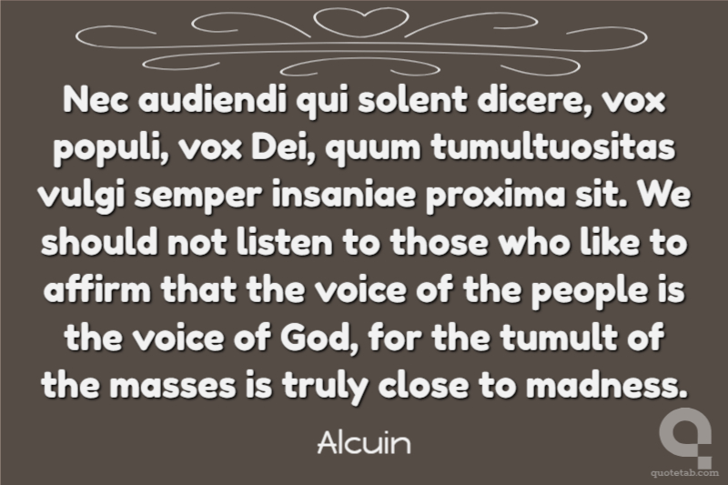 Nec audiendi qui solent dicere, vox populi, vox Dei, quum tumultuositas vulgi semper insaniae proxima sit. We should not listen to those who like to affirm that the voice of the people is the voice of God, for the tumult of the masses is truly close to madness.