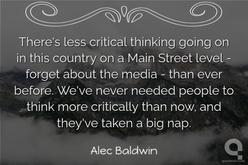 There's less critical thinking going on in this country on a Main Street level - forget about the media - than ever before. We've never needed people to think more critically than now, and they've taken a big nap.