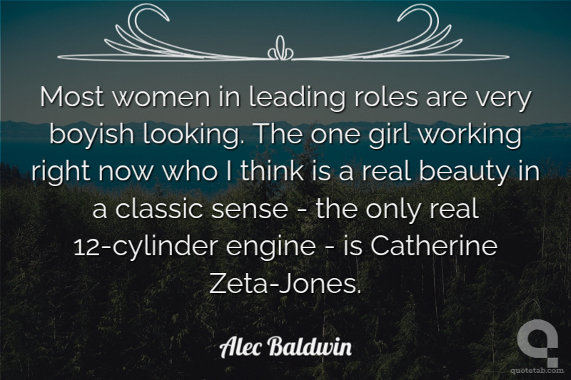 Most women in leading roles are very boyish looking. The one girl working right now who I think is a real beauty in a classic sense - the only real 12-cylinder engine - is Catherine Zeta-Jones.
