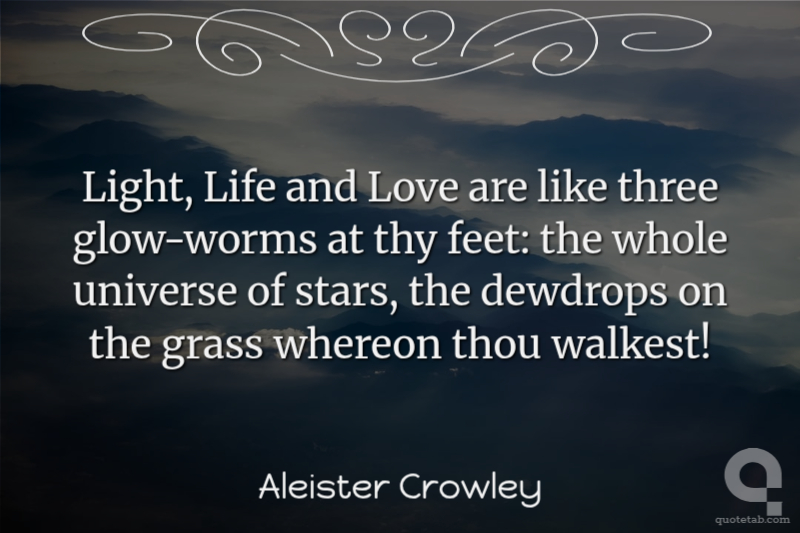 Light, Life and Love are like three glow-worms at thy feet: the whole universe of stars, the dewdrops on the grass whereon thou walkest!