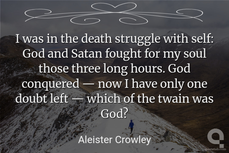 I was in the death struggle with self: God and Satan fought for my soul those three long hours. God conquered — now I have only one doubt left — which of the twain was God?