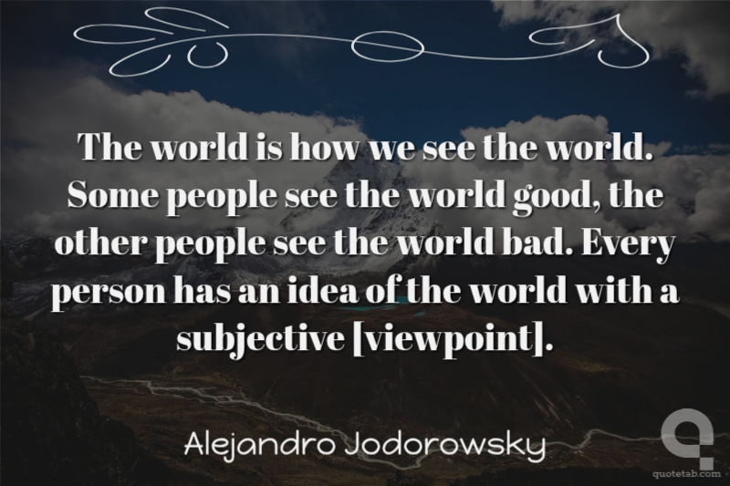 The world is how we see the world. Some people see the world good, the other people see the world bad. Every person has an idea of the world with a subjective [viewpoint].