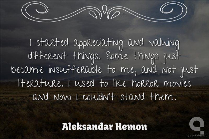 I started appreciating and valuing different things. Some things just became insufferable to me, and not just literature. I used to like horror movies and now I couldn't stand them.