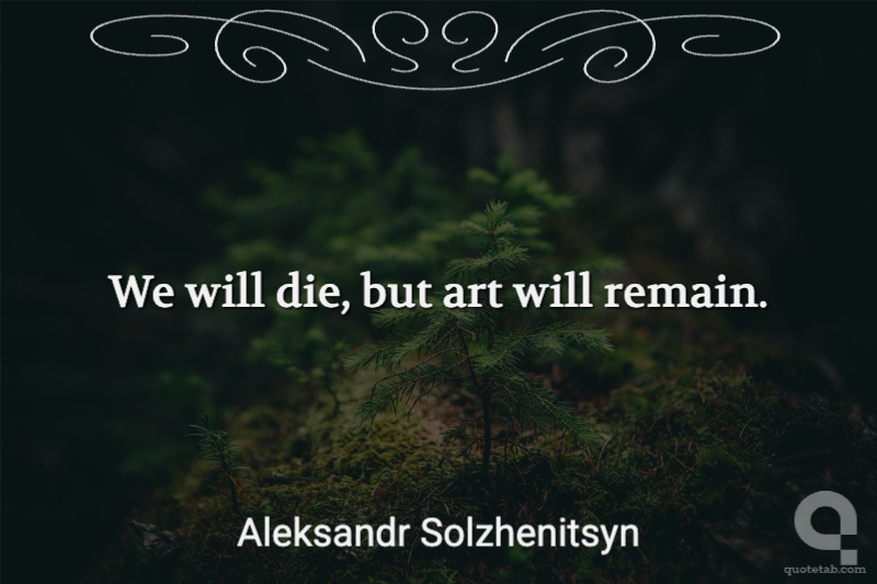 We will die, but art will remain.