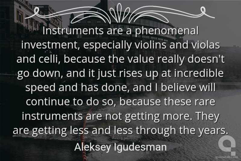 Instruments are a phenomenal investment, especially violins and violas and celli, because the value really doesn't go down, and it just rises up at incredible speed and has done, and I believe will continue to do so, because these rare instruments are not getting more. They are getting less and less through the years.