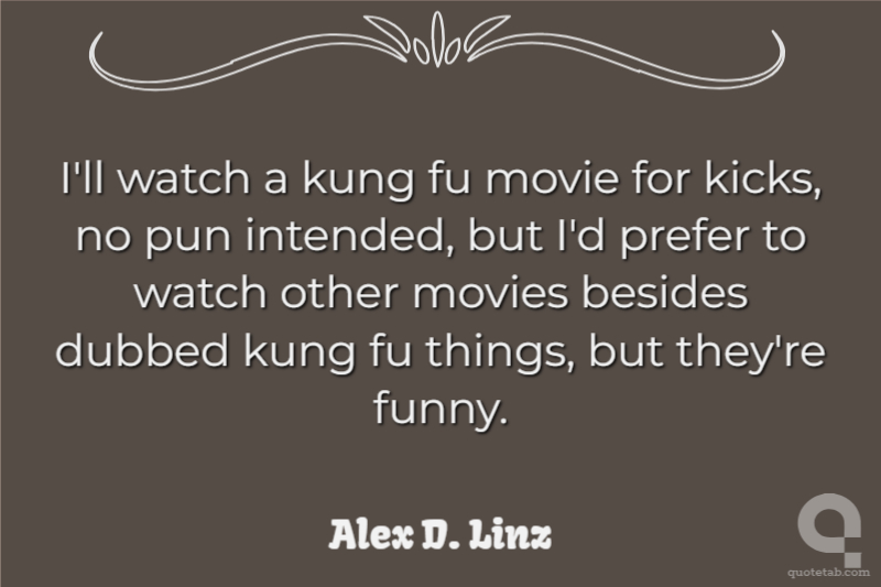 I'll watch a kung fu movie for kicks, no pun intended, but I'd prefer to watch other movies besides dubbed kung fu things, but they're funny.