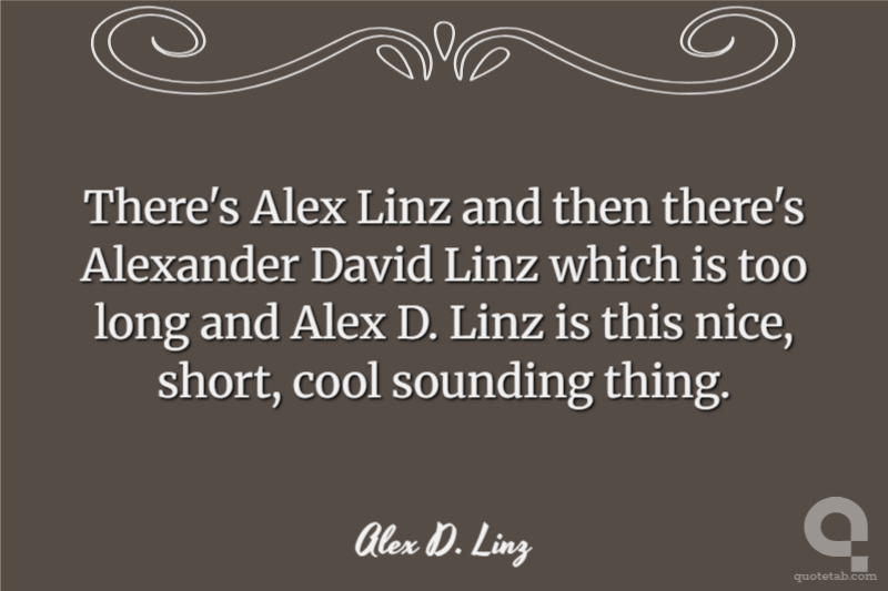 There's Alex Linz and then there's Alexander David Linz which is too long and Alex D. Linz is this nice, short, cool sounding thing.