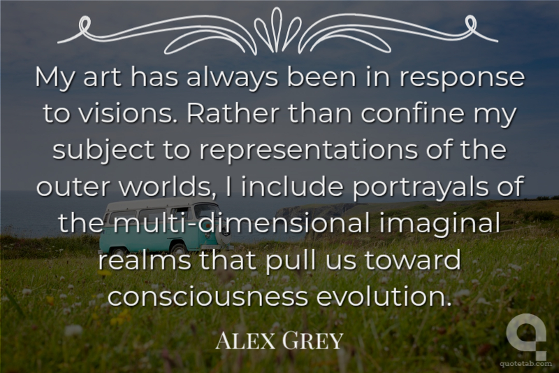 Alex Greyis an American visionary artist, author, teacher, and Vajrayana practitioner. His body of work spans a variety of forms including performance art, process art, installation art, sculpture, visionary art, and painting. Grey is a member of the Integral Institute. He is also on the board of advisors for the Center for Cognitive Liberty and Ethics, and is the Chair of Wisdom University's Sacred Art Department. He and his wife Allyson Grey are the co-founders of The Chapel of Sacred...