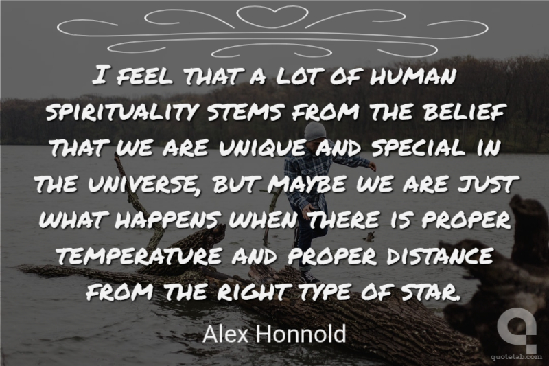 I feel that a lot of human spirituality stems from the belief that we are unique and special in the universe, but maybe we are just what happens when there is proper temperature and proper distance from the right type of star.