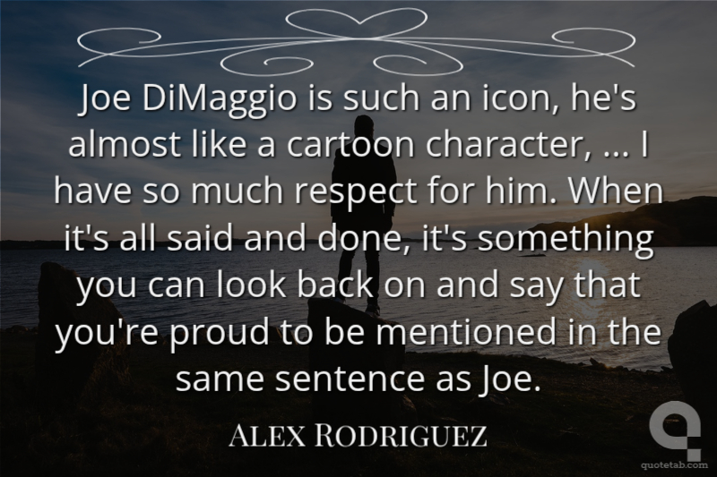 Joe DiMaggio is such an icon, he's almost like a cartoon character, ... I have so much respect for him. When it's all said and done, it's something you can look back on and say that you're proud to be mentioned in the same sentence as Joe.
