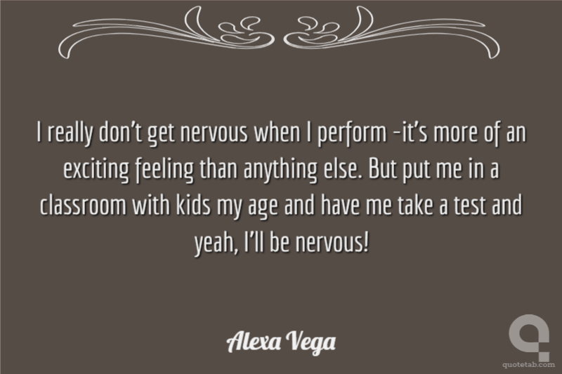 I really don't get nervous when I perform -it's more of an exciting feeling than anything else. But put me in a classroom with kids my age and have me take a test and yeah, I'll be nervous!