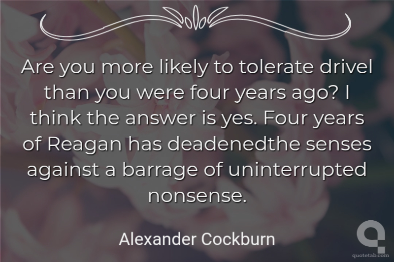 Are you more likely to tolerate drivel than you were four years ago? I think the answer is yes. Four years of Reagan has deadenedthe senses against a barrage of uninterrupted nonsense.